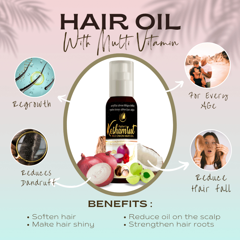 Keshamrut Red Onion Hair Oil is a powerful and effective solution for promoting overall hair health. Formulated with a unique blend of natural ingredients, including red onion extract, this medical-grade hair oil is designed to reduce hair fall, prevent split ends, and promote healthy hair growth. With daily use, Keshamrut Red Onion Hair Oil can help turn hair black and reduce dandruff, while providing a gentle massage to the scalp to reduce tiredness, headache, and body ache, promoting good sleep. From the very first use, this hair oil will leave hair looking shiny and feeling nourished, making it the perfect choice for anyone looking to improve the health and appearance of their hair.